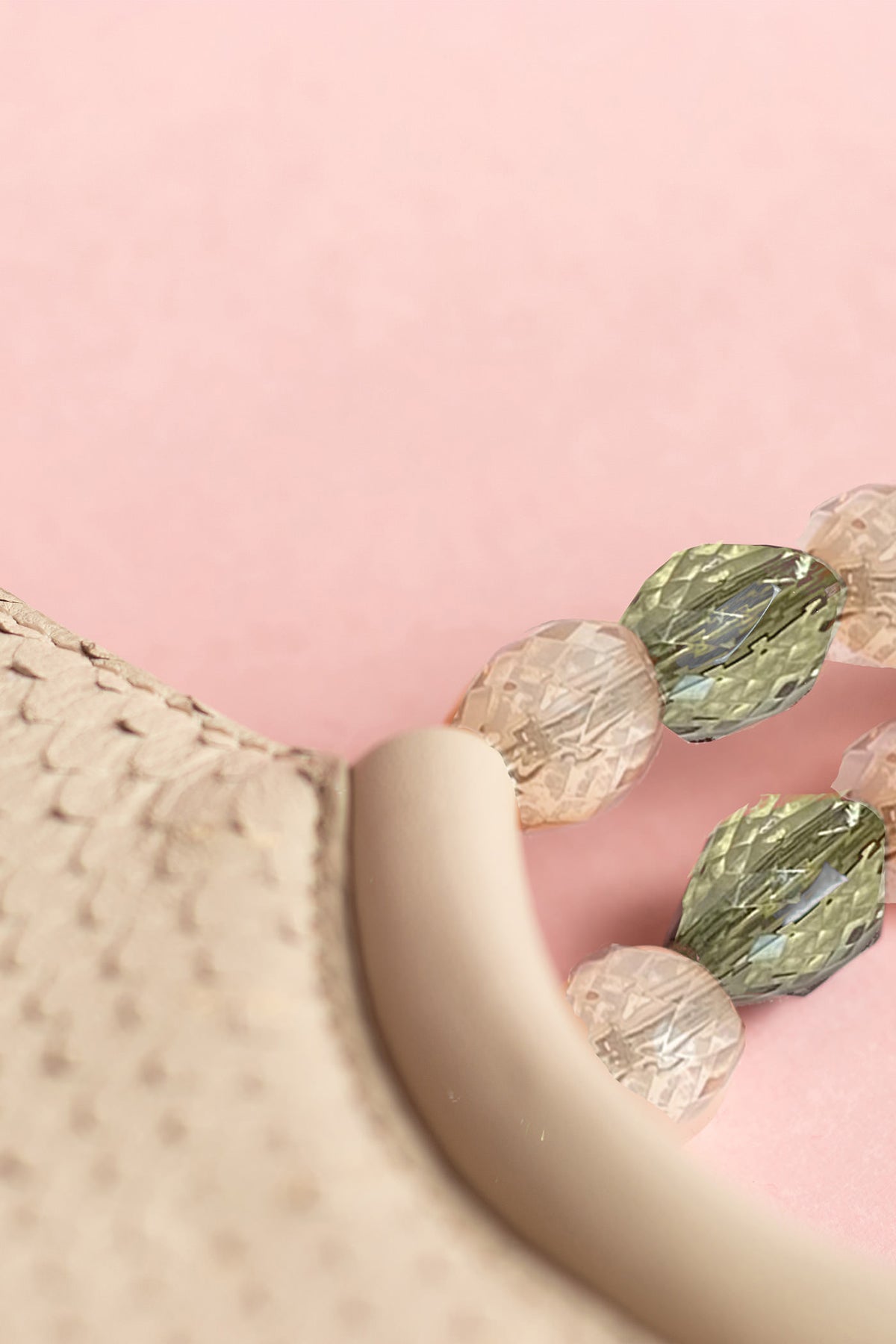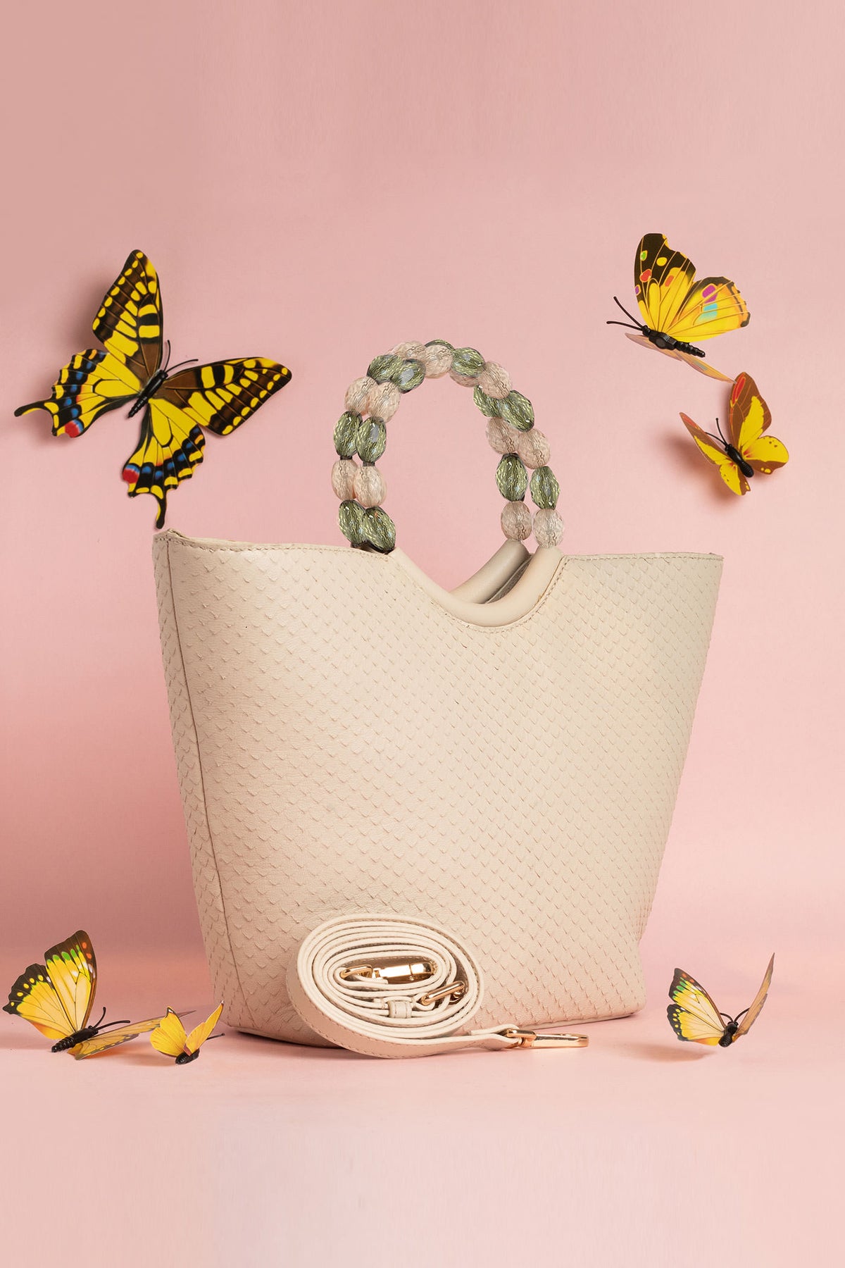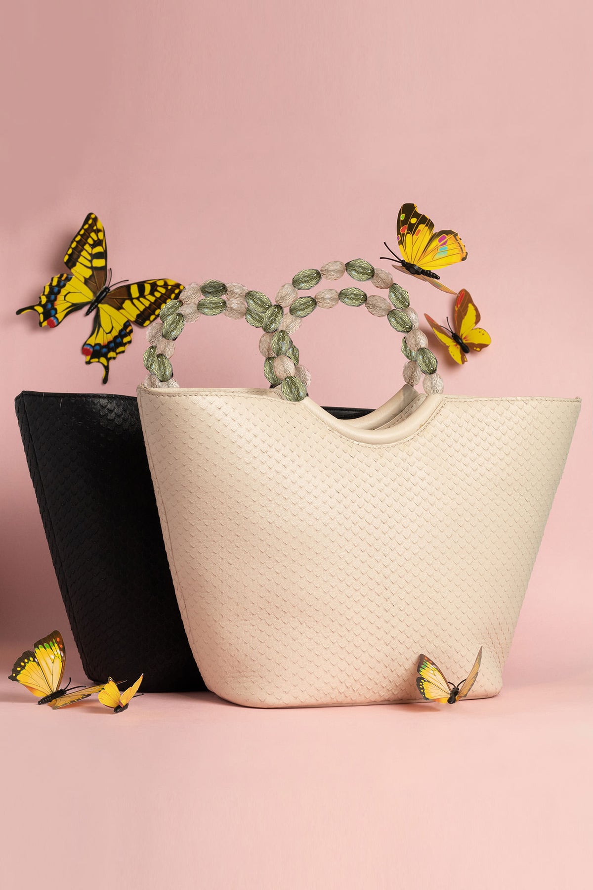 Rico is one of the best looking fashion bags you can come across Embossed with snake scaling and beaded with crystals, it can be hand held or taken across the body. It comes with a detachable strap that can covert this piece easily into a crossbody as per your comfort. Pick your color- black or beige or Both !!