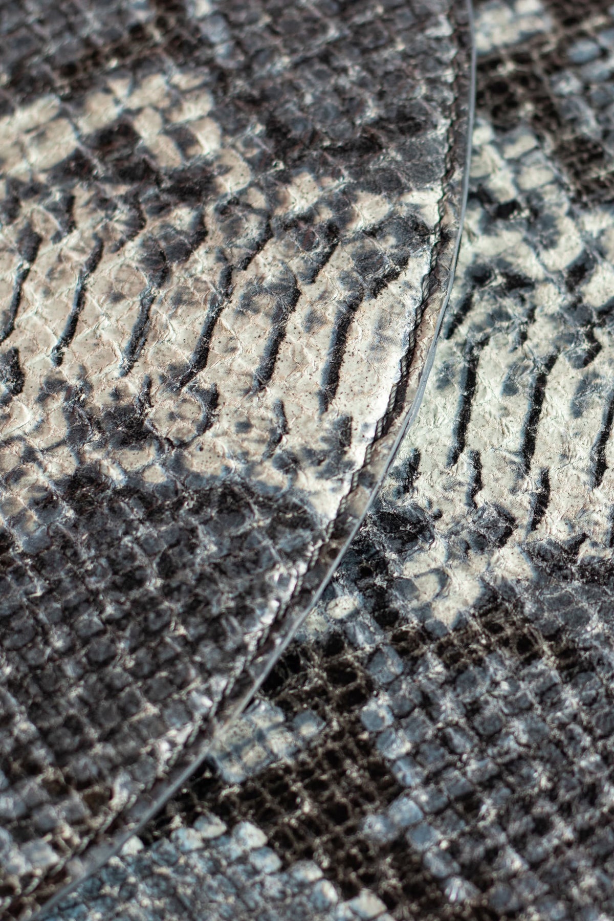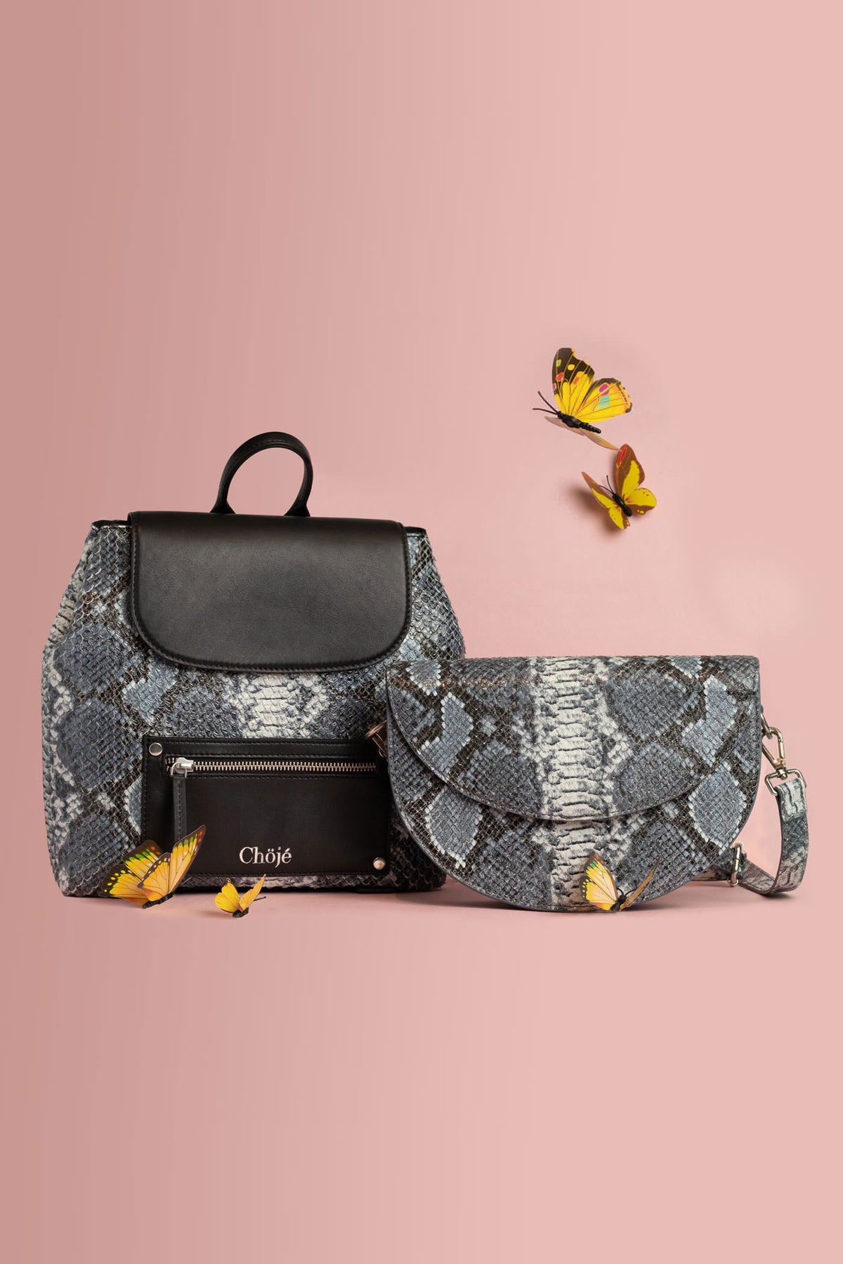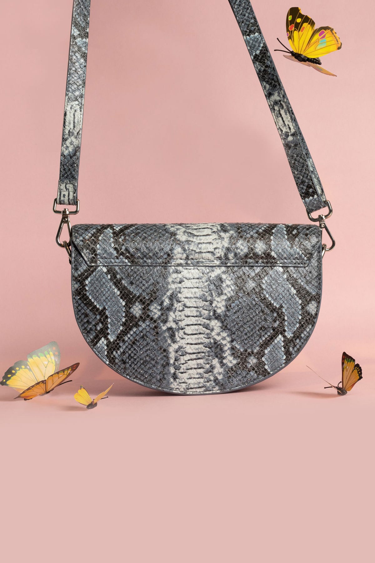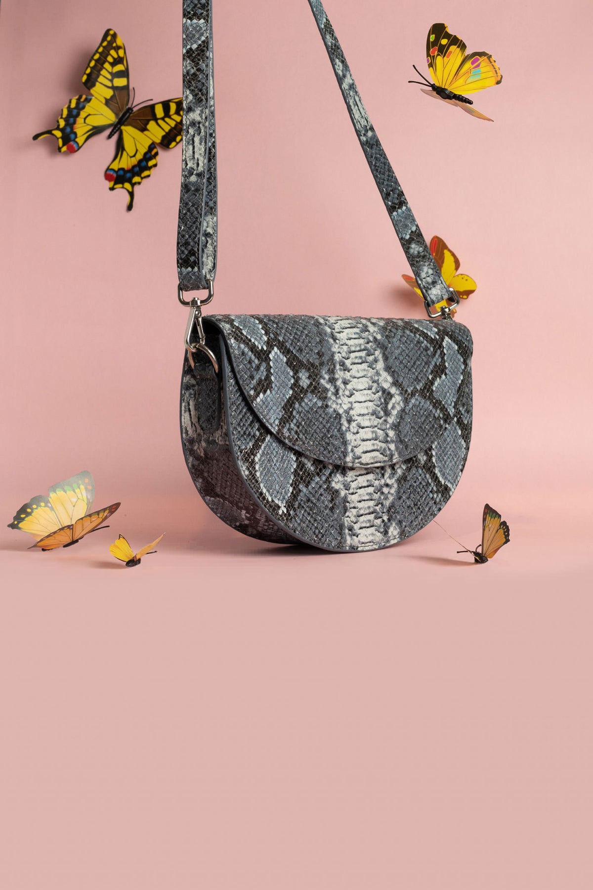 Smiley is sure to bring a smile on your face this summer. This bag with its unqiue shape can be used as a clutch or a crossbody. It’s made in 100%leather embossed with snake scaling giving it a luxurious feel and touch.