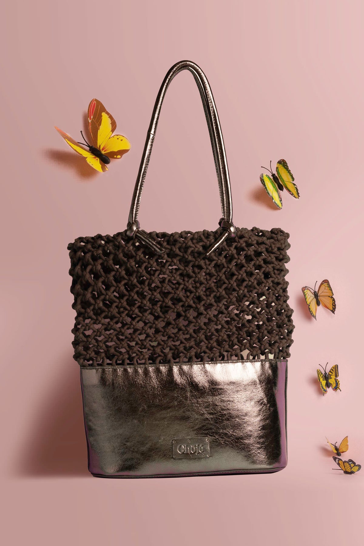 This weaved bag is perfect to add a street wear vibe to your look. Hand knotted with love, it comes attached to a leather case deep enough to fit your belongings. Choose your colors- lavender or copper.