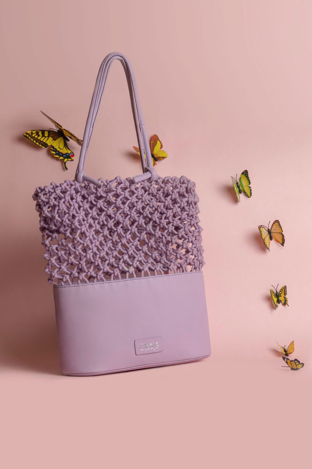 This weaved bag is perfect to add a street wear vibe to your look. Hand knotted with love, it comes attached to a leather case deep enough to fit your belongings. Choose your colors- lavender or copper.