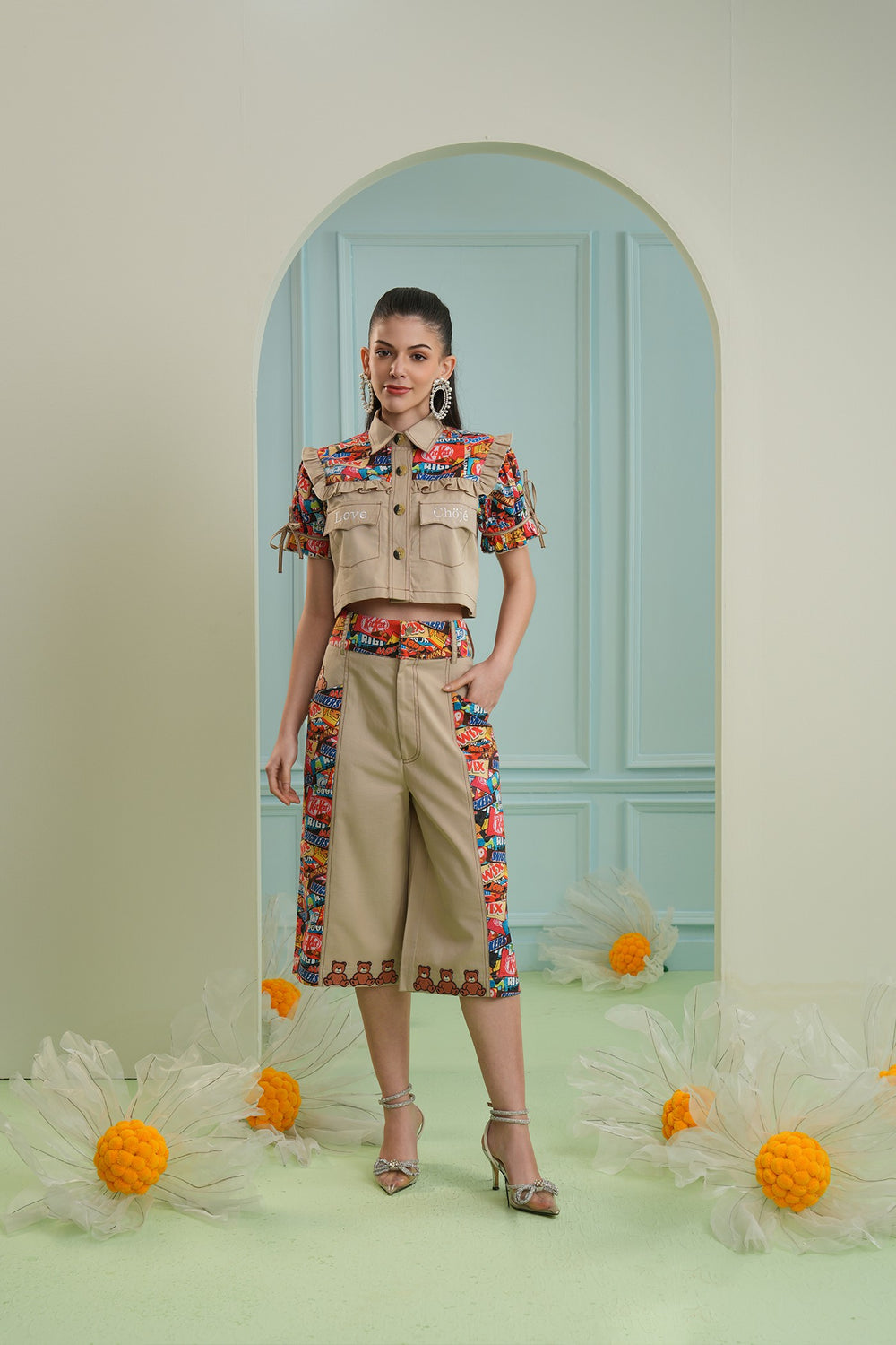 Too sweet cargo pants- beige floral