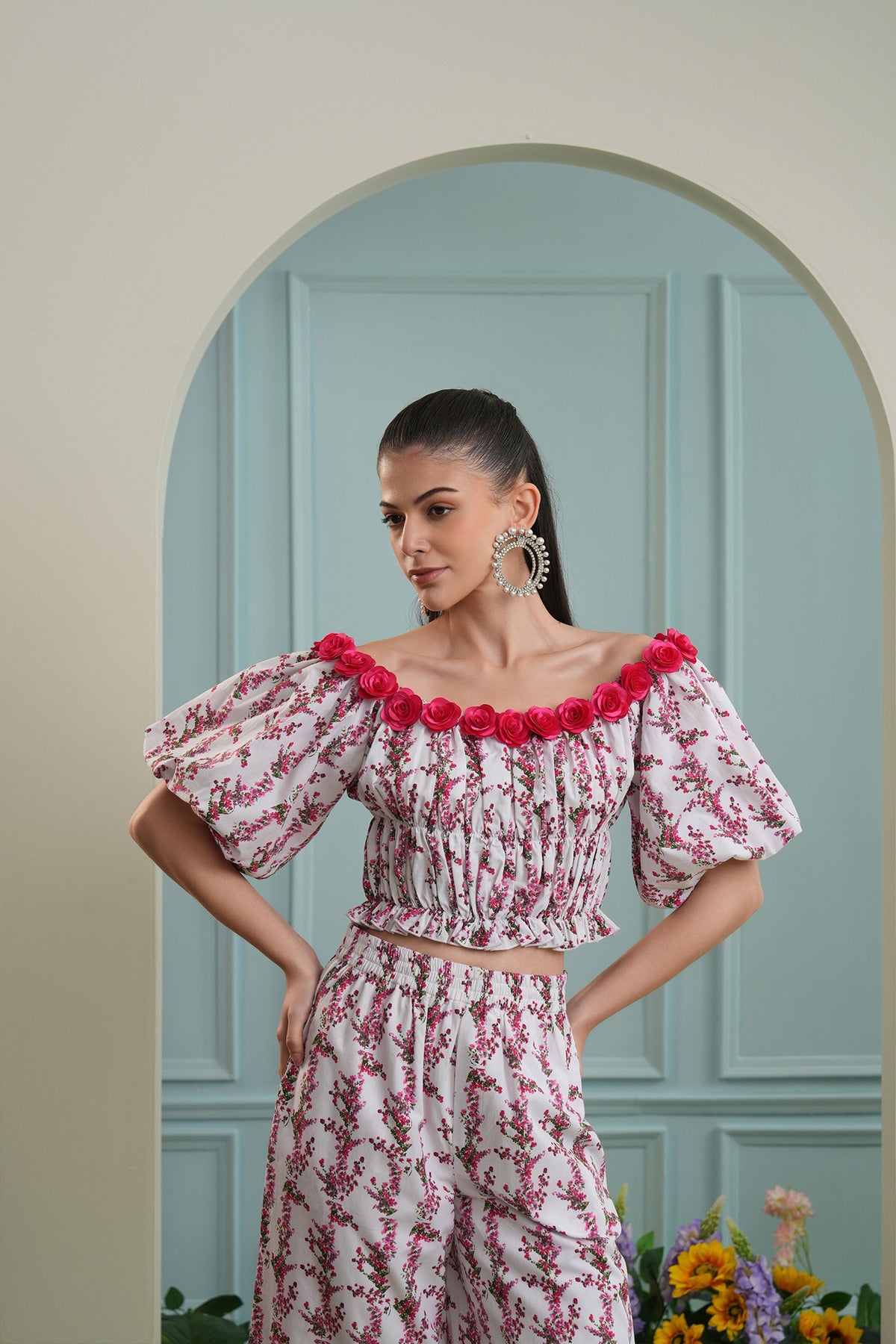 The Adorn Me top is a cute crop top featuring lovely floral details that add a touch of femininity and charm