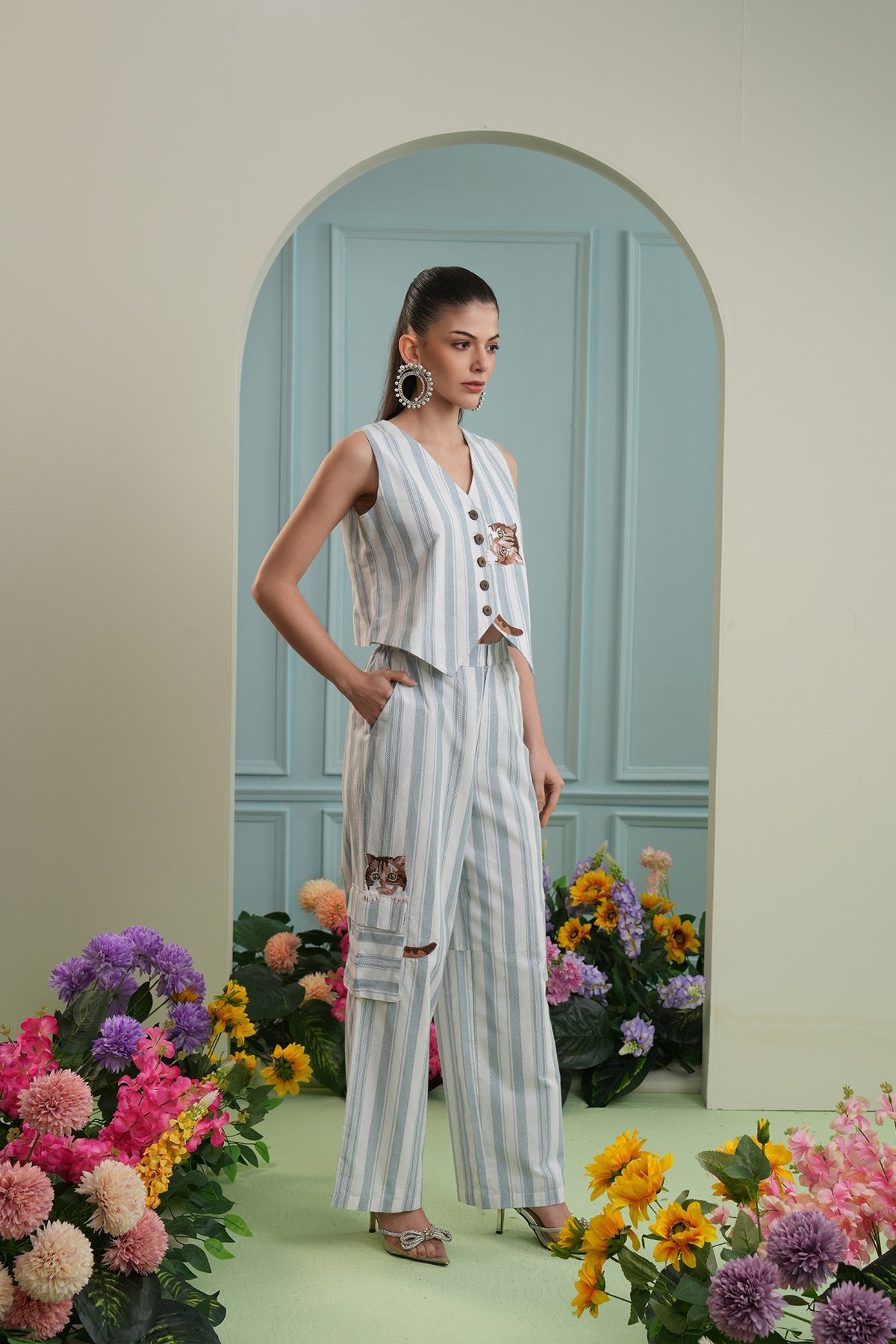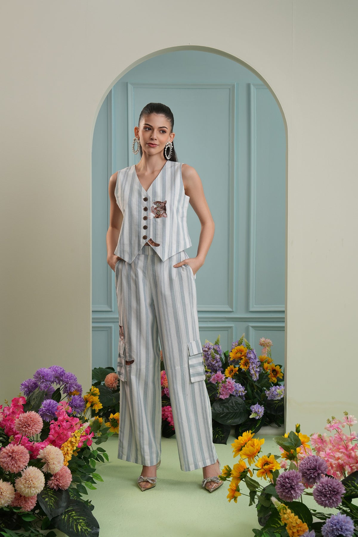 The Kitty Koo cargo is the cutest in town, featuring an adorable kitty cat peeking out for a playful twist. These cargos combine comfort and style, offering a relaxed fit perfect for casual days. A unique, fun addition to any wardrobe, they’re the perfect mix of practicality and charm.