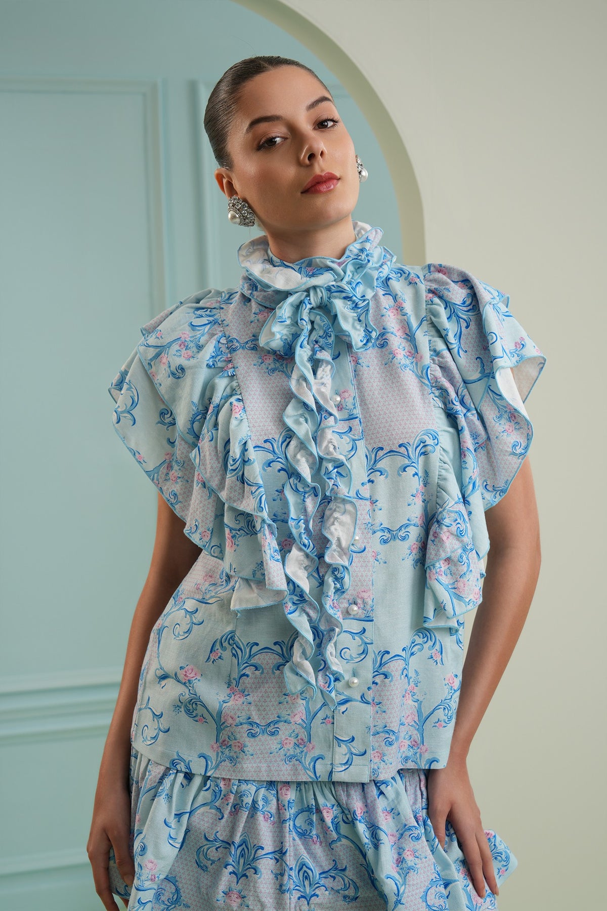 The Old Town Top in Rococo print is a true fashion statement. Crafted from 100% pure cotton, it offers a comfortable, breathable fit. Its soothing design is easy on the eyes, blending classic elegance with modern style. Perfect for any occasion, this top combines style and comfort effortlessly.