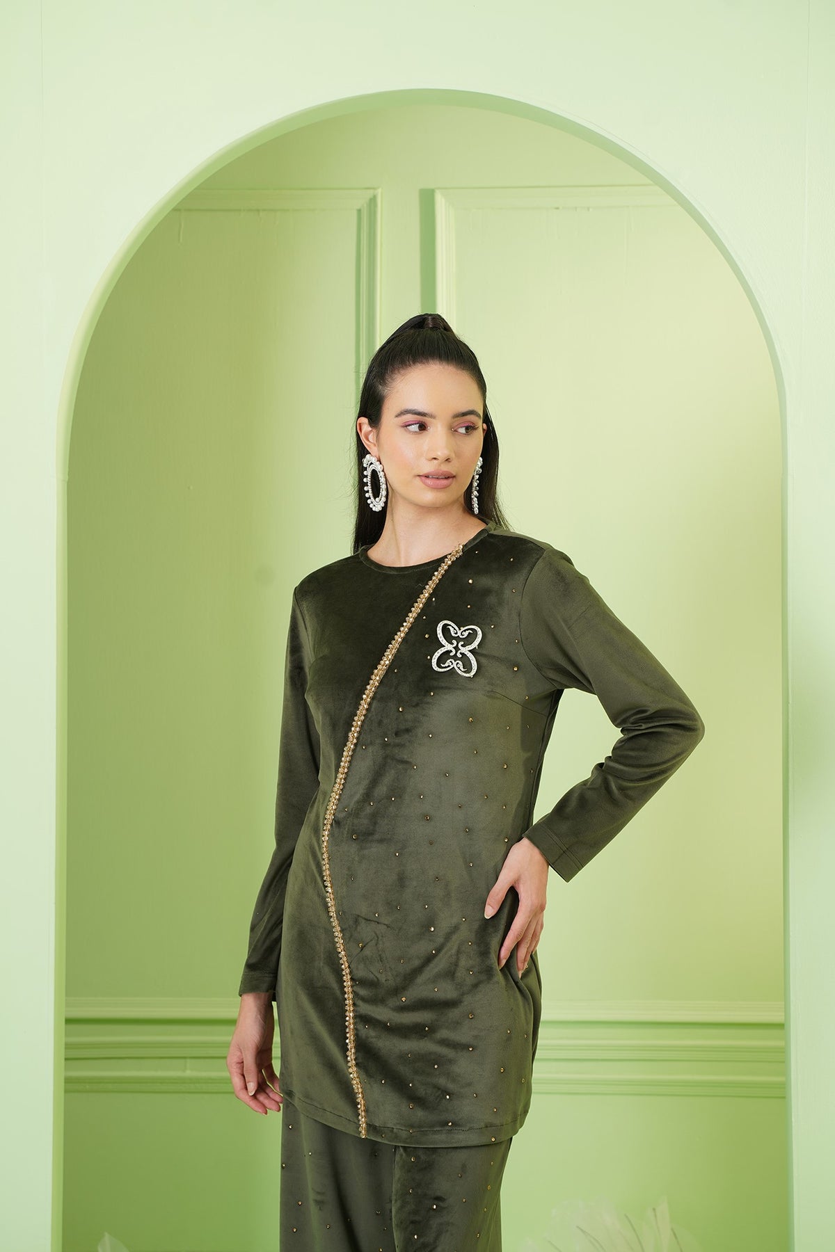 The MCG top exudes elegance with its lady-like design and just the right touch of bling. Its wrap-around style adds a graceful flair, while the feather-light fabric offers unparalleled comfort. This top effortlessly combines a formal appearance with exceptional comfort, making it a perfect choice for any sophisticated occasion.