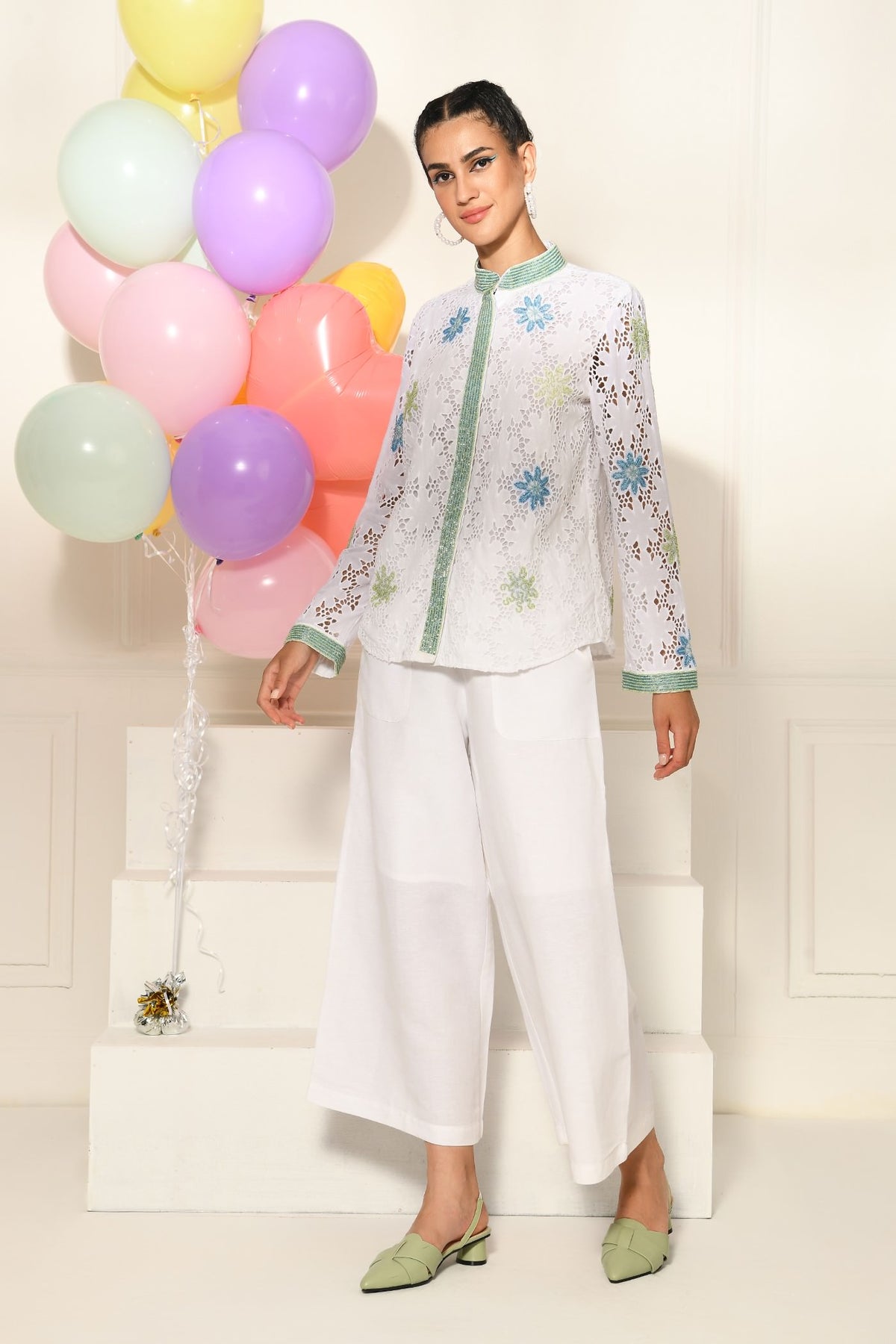 Elegant and fresh, meet marbella. Hand embroidered with love, our marbella shirt will make you summer ready in a jiffy. It comes in 2 refreshing colors. Since it is a hand embroidered garment, delivery of this item can take upto 3 weeks.