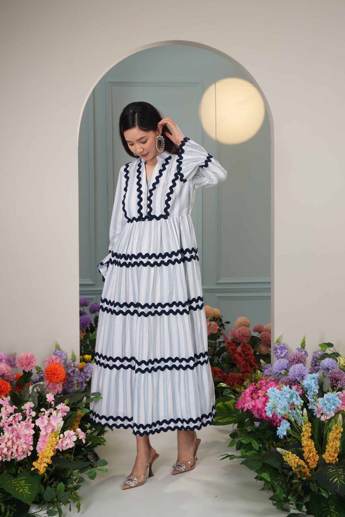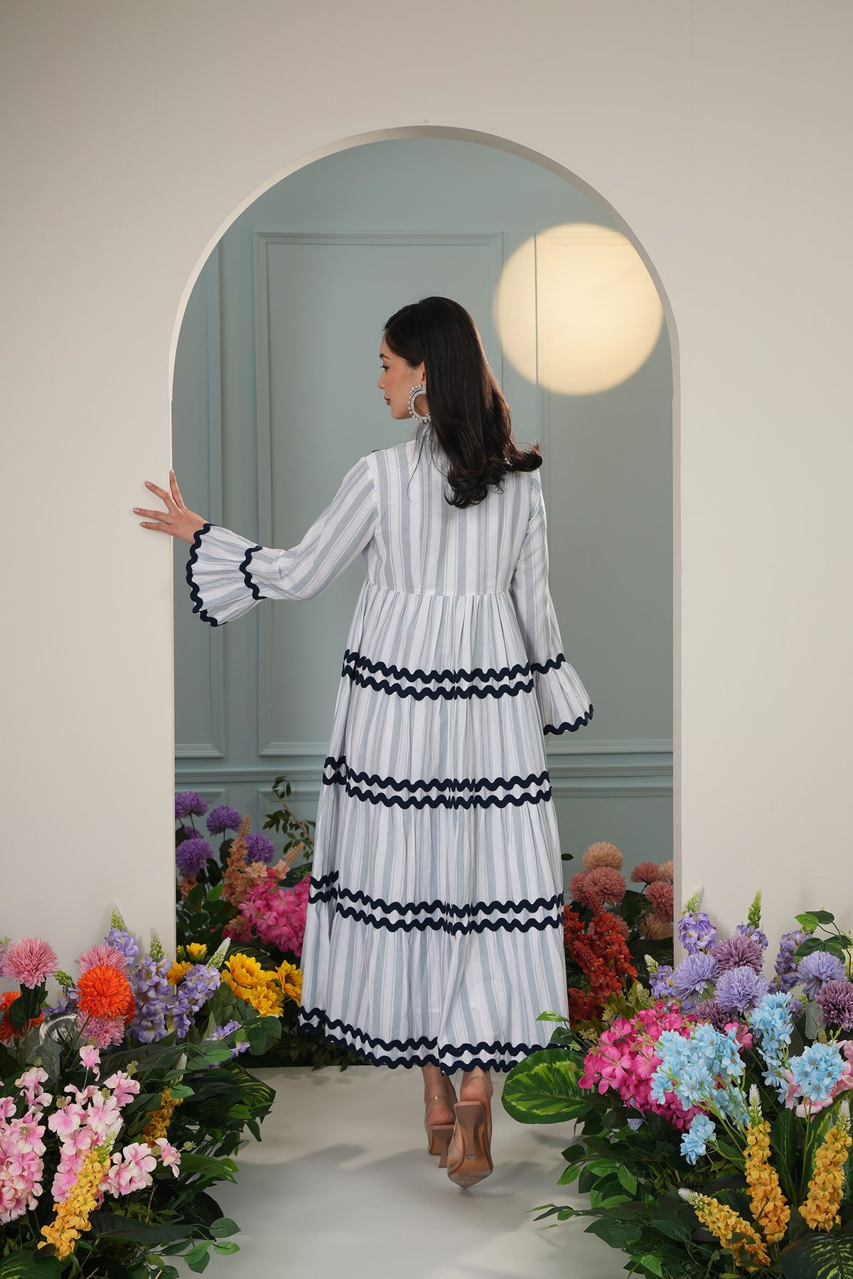 The Queeny Dress is the epitome of summer elegance, presenting a stunning long silhouette that gracefully flows with the season’s vibes. Its design exudes regal charm, making it a go-to choice for sophisticated summer events. Embrace the allure of this dress, where elegance meets the ease of warm-weather styling.
