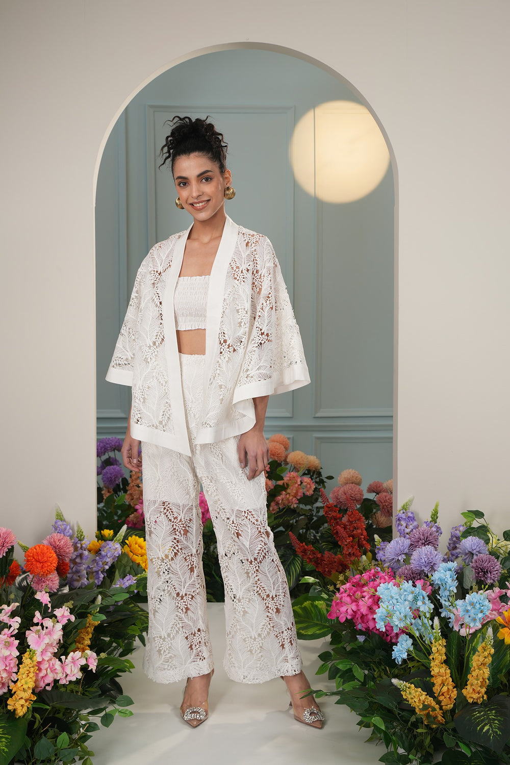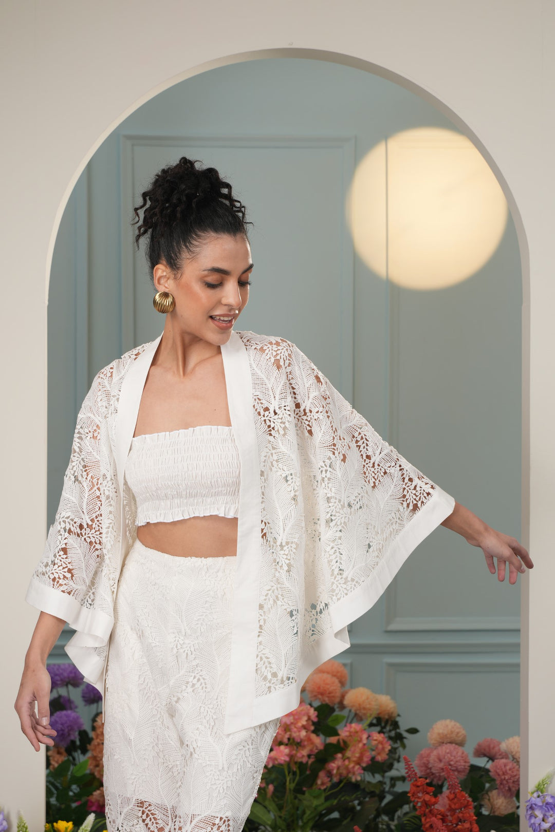 Floaty Cover Up - White Leaves