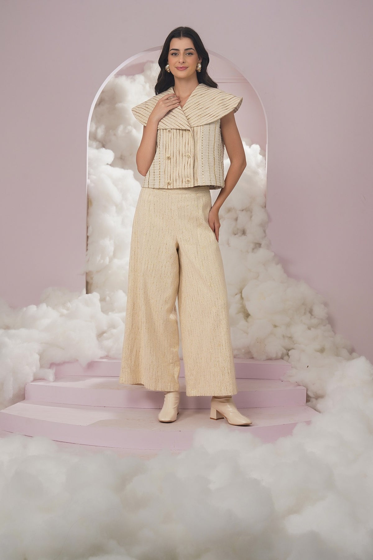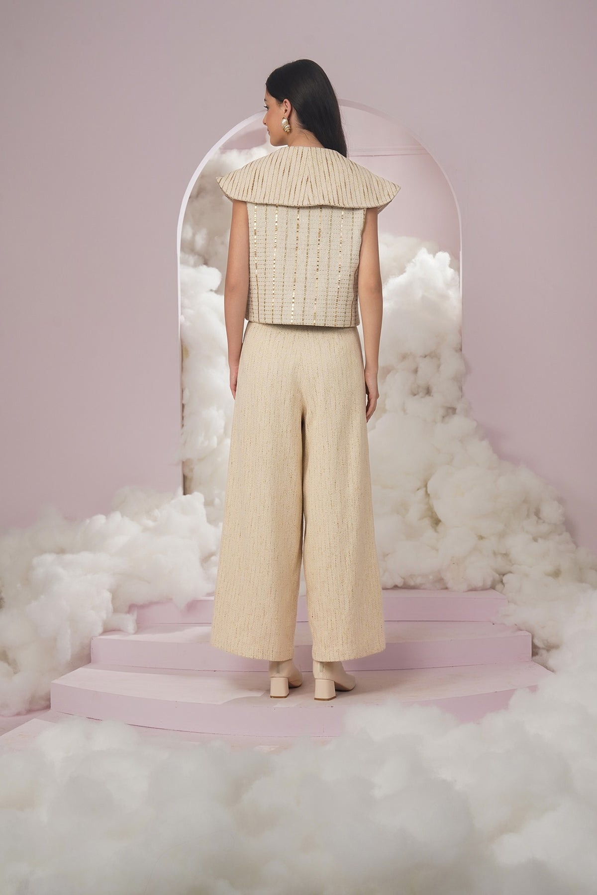 The Hocus Top features a stunning silhouette crafted from luxurious tweed, blending elegance with modern charm.