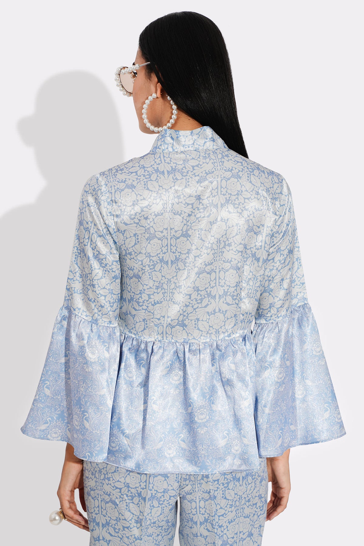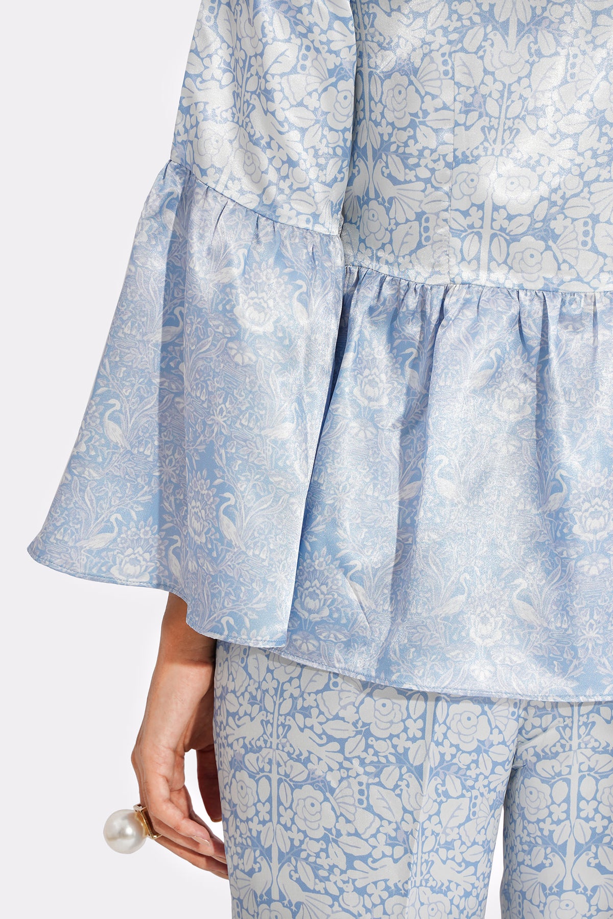 2 beautifully rich prints juxtaposed to create this unique beauty. This top can be paired with our lapelo or normandy pants to complete the look.