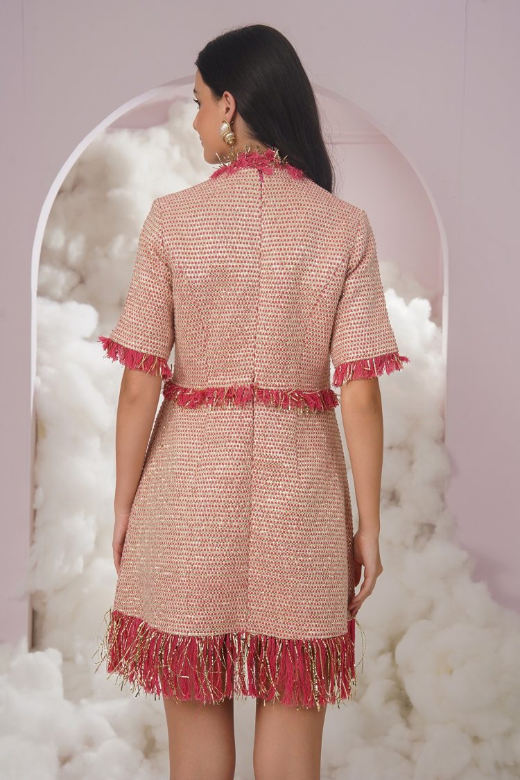 Turn heads this season in the Kiki Dress — a cute pink tweed number that’s effortlessly chic and stylish. With its flattering fit and eye-catching texture, it’s perfect for parties and special events. Elegant yet playful, the Kiki Dress adds instant charm and confidence to your wardrobe.