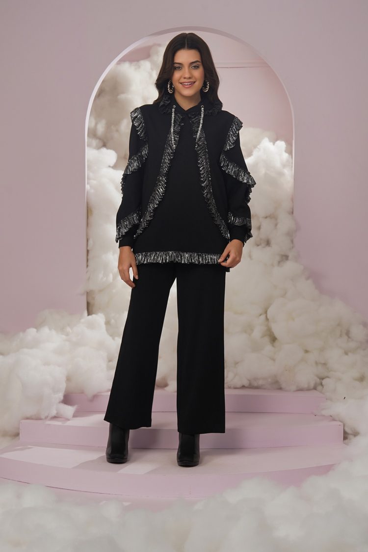 Icy pastel colors are a treat for the eyes, aren’t they?? Demi kaftan shirt comes with a matching inner. She is super cute and has an assymertrical ruffled arm.