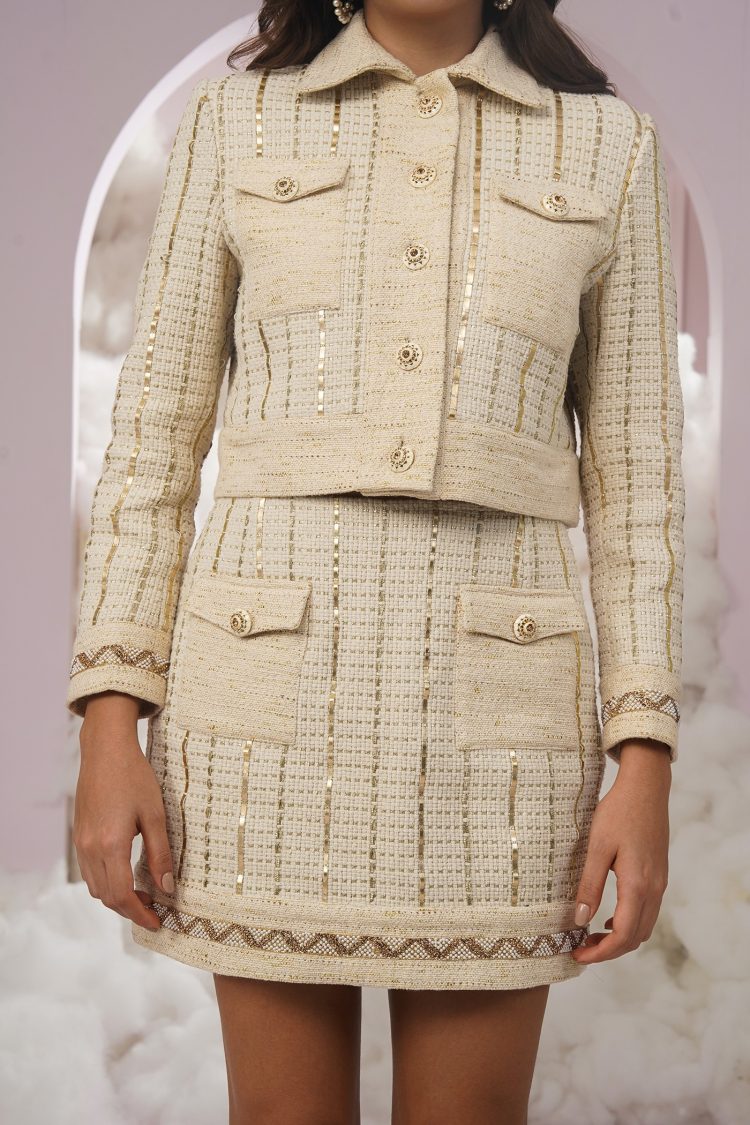 The “”Sweet Thing”” skirt is a tweed masterpiece, tailored to perfection and designed to turn heads. it’s a statement of sophistication and style. This one-of-a-kind piece elevates any outfit, making it the ultimate blend of classic charm and modern confidence.