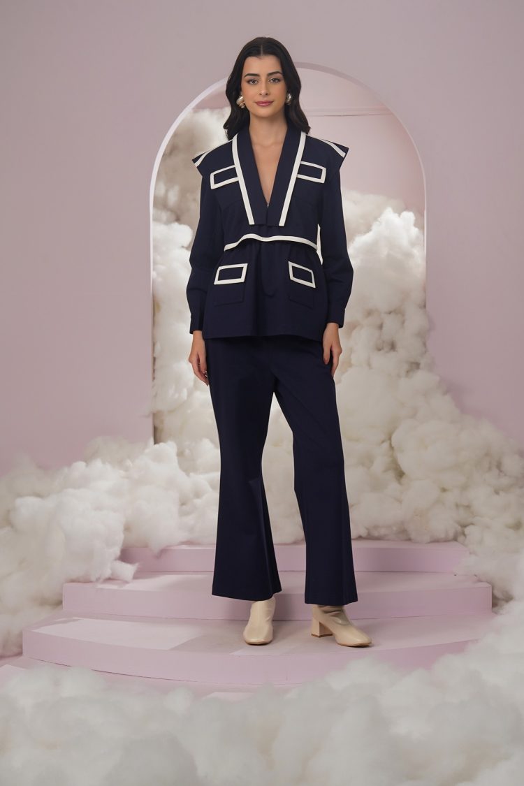 The Zoya Top in navy is pure magic. Its unique silhouette paired with striking contrast detailing creates a look that’s both elegant and modern. Effortlessly stylish and flattering, it’s perfect for dressing up or down. A standout piece that turns heads—Zoya is the top your wardrobe’s been waiting for.